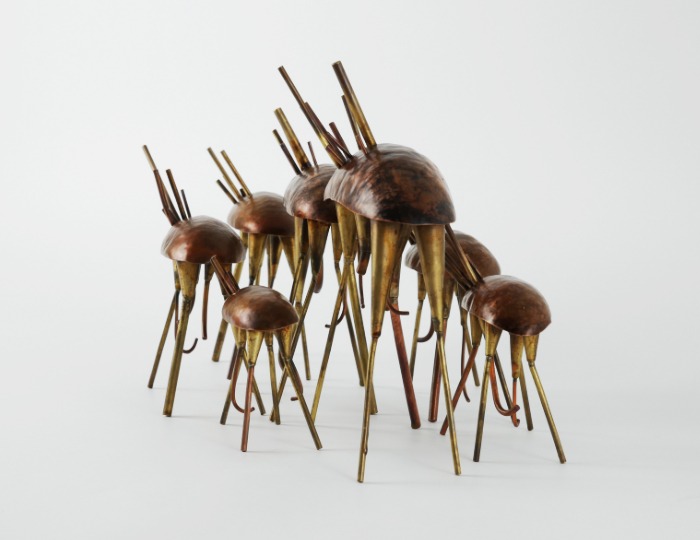 With Entanglement I began to move outwards. Although in some instances small items (fine silver objects or coal) were inside a few of the pieces, most showed the world their characters, with old iron, slag (collected from around the silver mine at Broken Hill), lead or coal hanging beneath their bodies.